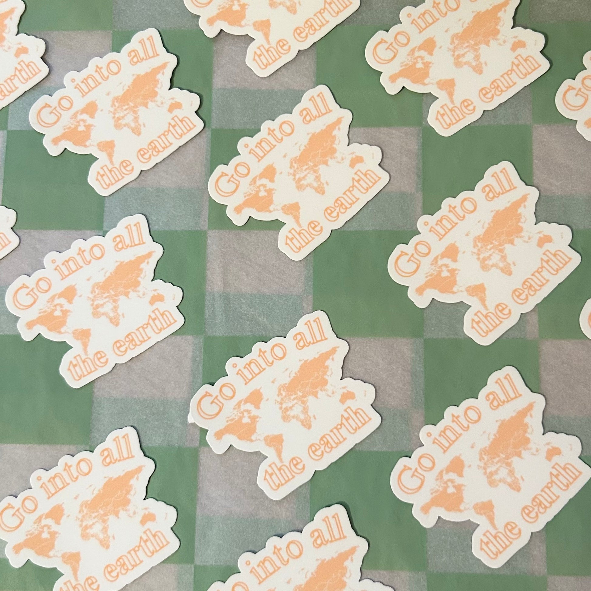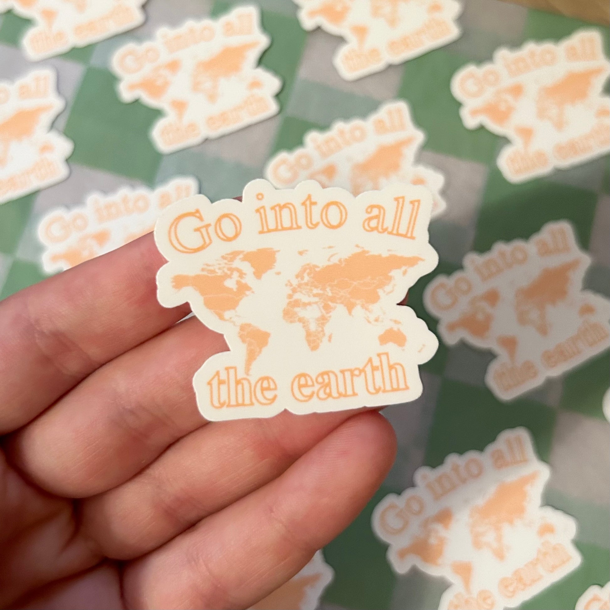 This 1.5 x 1.5” decorative Christian sticker features a softly detailed map design, symbolizing the global mission field, paired with the powerful words, “Go into all the nations.” Inspired by the Great Commission (Mark 16:15), this compact sticker serves as a bold reminder of Christ’s call to share the Gospel with the world. Ideal for travel mugs, laptops, journals, or even mission trip gear. It’s a simple conversation starter and a stylish way to carry your faith wherever you go!