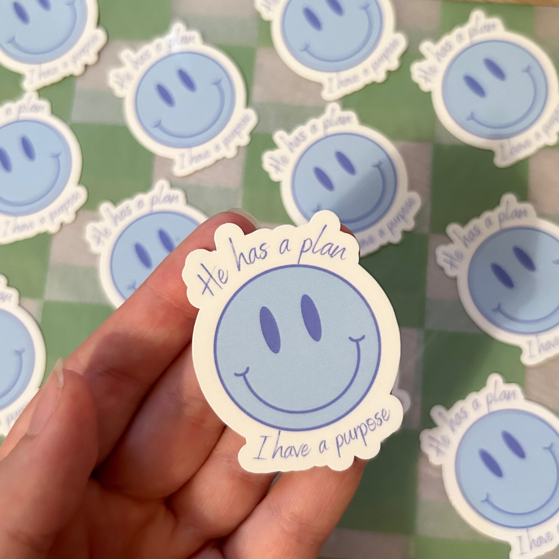 This 1.5 x 2” sticker features the phrase, “He has a plan, I have a purpose” in a fun, blue font with a cheerful blue smiley face. This symbolizes joy and the hope in Christ. This is a powerful reminder of God’s divine guidance and our unique calling. Perfect for water bottles, journals, laptops, or anywhere you want to share your faith and encouragement!